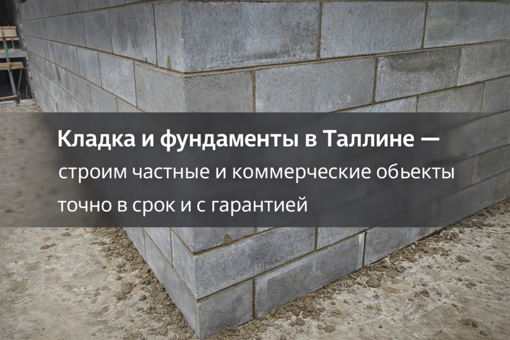 Профессиональные кладочные и бетонные работы в Таллине и Харьюмаа. Мы выполняем проекты быстро, точно и с гарантией качества, опираясь на многолетний опыт работы в строительстве. Более 100 реализованных объектов — от фундаментов и несущих стен до бетонных полов и комплексных конструктивных решений.